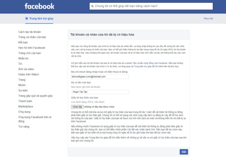 Lưu ý : Không phải tài khoản FB nào cũng mở được mà còn tùy thuộc vào mức độ vi phạm của tài khoản facebook đó. Nhưng không có gì để mất bằng cách không cố gắng